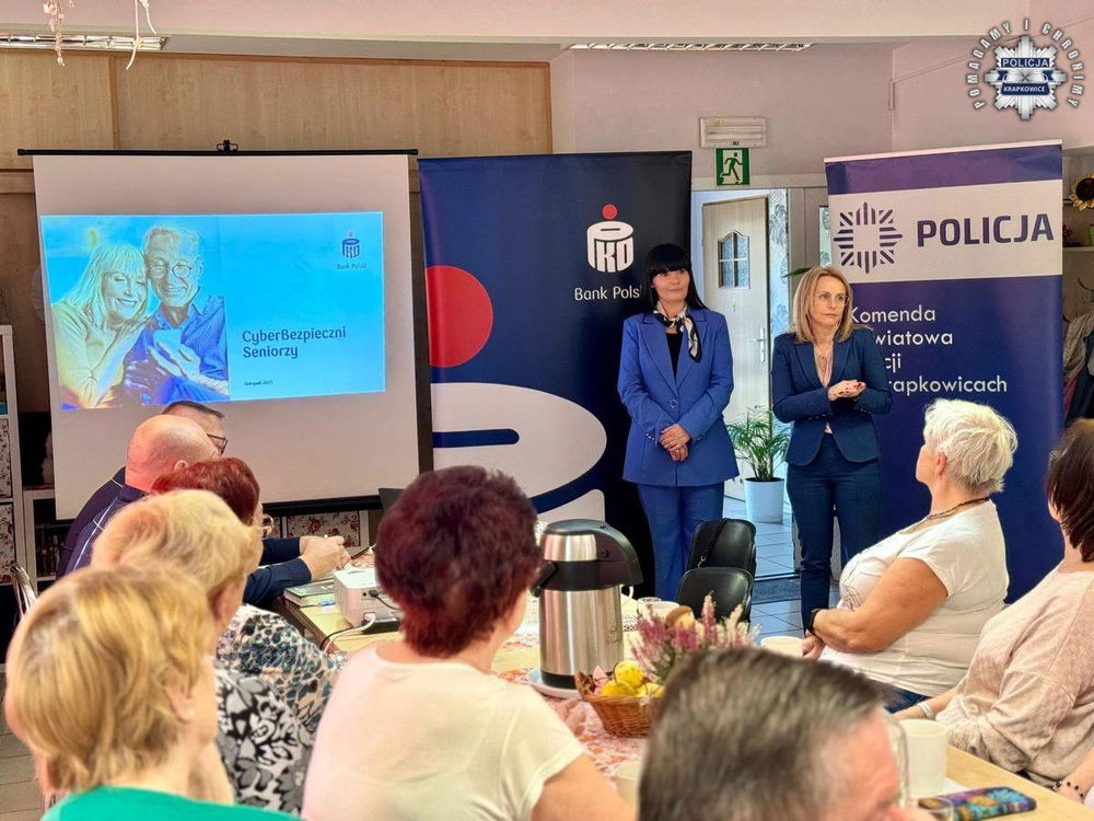 Ekspertki z banku omówiły najpopularniejsze metody oszustw stosowane wobec osób starszych oraz przedstawiły praktyczne sposoby zabezpieczenia danych i ochrony przed atakami cyberprzestępców. Oficer prasowy mł. asp. Dominik Wilczek zaprezentował aktualne trendy w sieci, które mogą zagrażać użytkownikom, ze szczególnym uwzględnieniem seniorów, oraz przypomniał o aplikacjach Krajowa Mapa Zagrożeń Bezpieczeństwa i Moja Komenda.